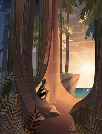 Walking along a trail through an ancient redwood forest deeply rooted into the rocks and cliffs of the Pacific Coast, I stop for a moment and inhale a deep, refreshing breath of earth, ocean and pine.